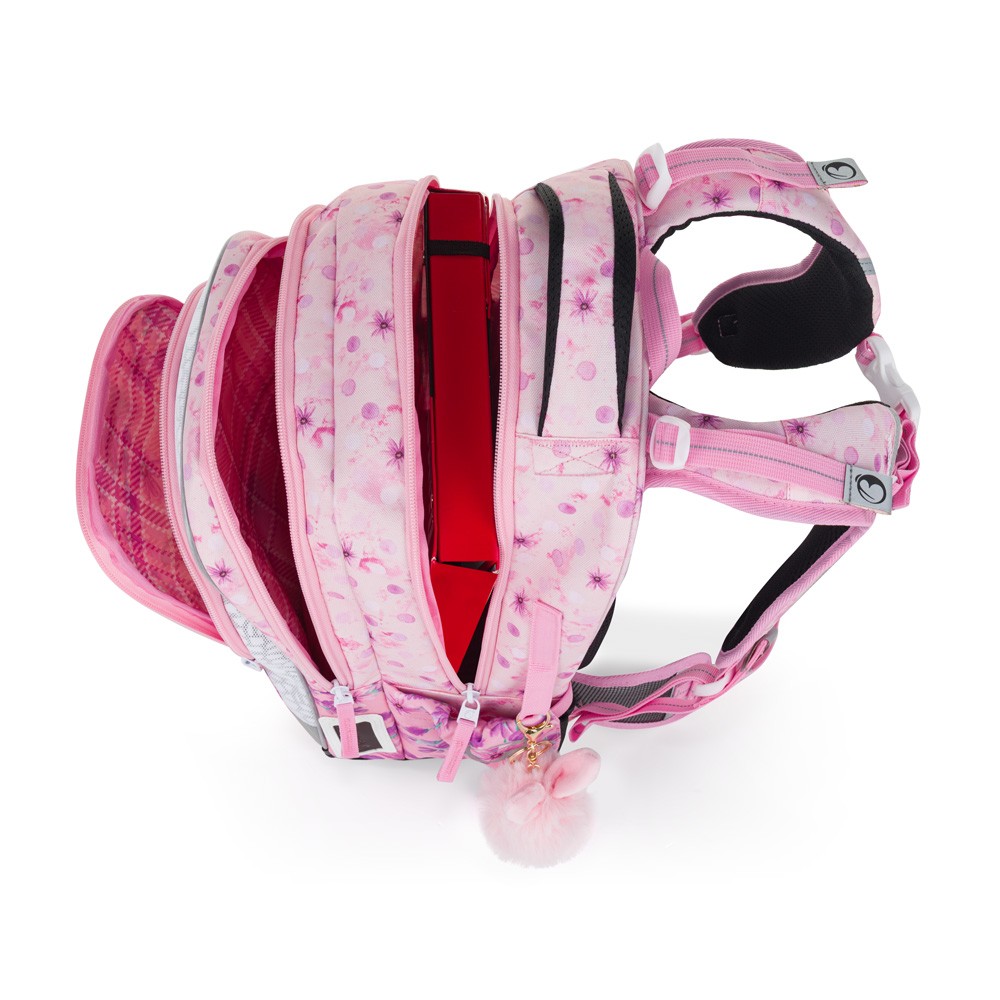 Ľahký batoh s trojkomorovým usporiadaním pre učebnice a zošity, ergonomicky tvarovaným chrbtovým systémom pre pohodlné nosenie a reflexnými prvkami - ideálny parťák pre školáčky od prvej do tretej triedy. Ramenné popruhy a chrbtový systém sú mäkko polstrované. Ergonomicky tvarovaný chrbát a priedušný bedrový pás podporujú správne držanie tela. Pružný hrudný pás napomáha stabilite batohu na chrbte. Zabraňuje skĺznutiu ramenných popruhov z ramien.