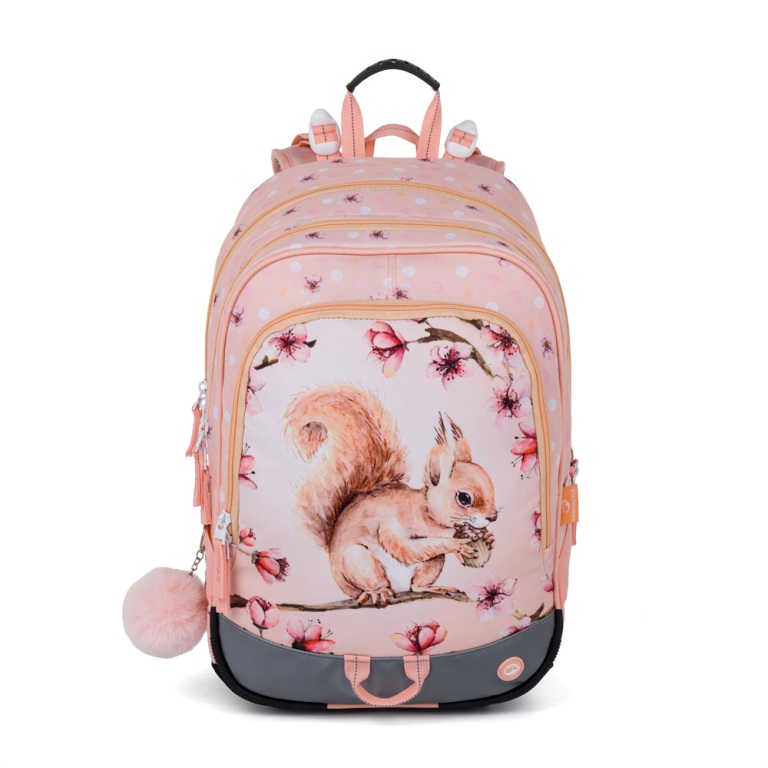 Jemný, extra ľahký trojkomorový školský batoh pre prvákov s veveričkou. Deti a rodičia si ho zamilujú. Bezpečný chrbtový systém, reflexné prvky, sieťovina proti poškriabaniu, organizér, pútko na kľúče a veľa ďalších skvelých funkcií. Ramenné popruhy a chrbtový systém sú mäkko polstrované. Vydrží minimálne do tretej triedy.