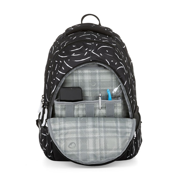 Originálny a mimoriadne ľahký batoh pre väčšie školáčky. Batoh má vystužený chrbát, hrudný pás a nastaviteľné ramenné popruhy, ktoré sa správne prispôsobia telu. V hlavnej komore je polstrovaná priehradka na 15" notebook a v prednej časti vrecko na suchý zips. Nastaviteľné ramenné popruhy a hrudný popruh podporuje správne držanie tela a stabilitu batohu na chrbte žiaka. Batoh má vystužené polstrované dno so skladacím dnom vo vnútri. To zaisťuje rovnomerné rozloženie predmetov v batohu a stabilitu pri státí na zemi. Batoh má výrazné reflexné prvky. Vďaka nim je školáčka v bezpečí za každého počasia a v každom dennom čase.