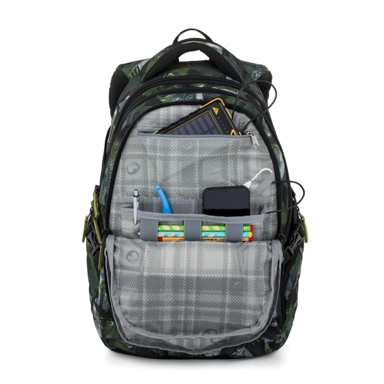 Školský batoh pre školákov od 4. ročníka, ktorí potrebujú priestor na veľa vecí. Má tri priestranné komory s polstrovanou priehradkou na 15" notebook a množstvo menších vreciek na rôzne predmety. Do bočných vreciek sa zmestí fľaša na pitie. Chrbát batohu je anatomicky tvarovaný a mäkko polstrovaný. Rovnako ako ramenné popruhy. V malej priehradke sa nachádza organizér Na bokoch sú kompresné popruhy na úpravu hĺbky batohu alebo na pripevnenie fľaše. Samozrejmosťou sú reflexné prvky.