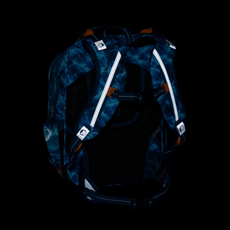 Ľahký batoh s trojkomorovým usporiadaním pre učebnice a zošity, ergonomicky tvarovaným chrbtovým systémom pre pohodlné nosenie a reflexnými prvkami - ideálny parťák pre školákov od prvej do tretej triedy. Ramenné popruhy a chrbtový systém sú mäkko polstrované. Ergonomicky tvarovaný chrbát a priedušný bedrový pás podporujú správne držanie tela. Pružný hrudný pás napomáha stabilite batohu na chrbte. Zabraňuje skĺznutiu ramenných popruhov z ramien.