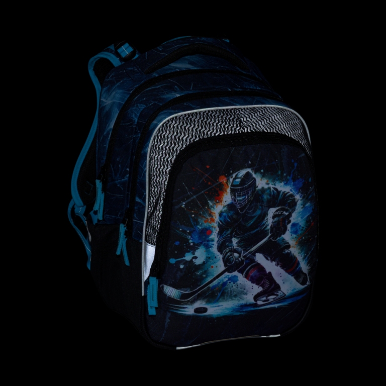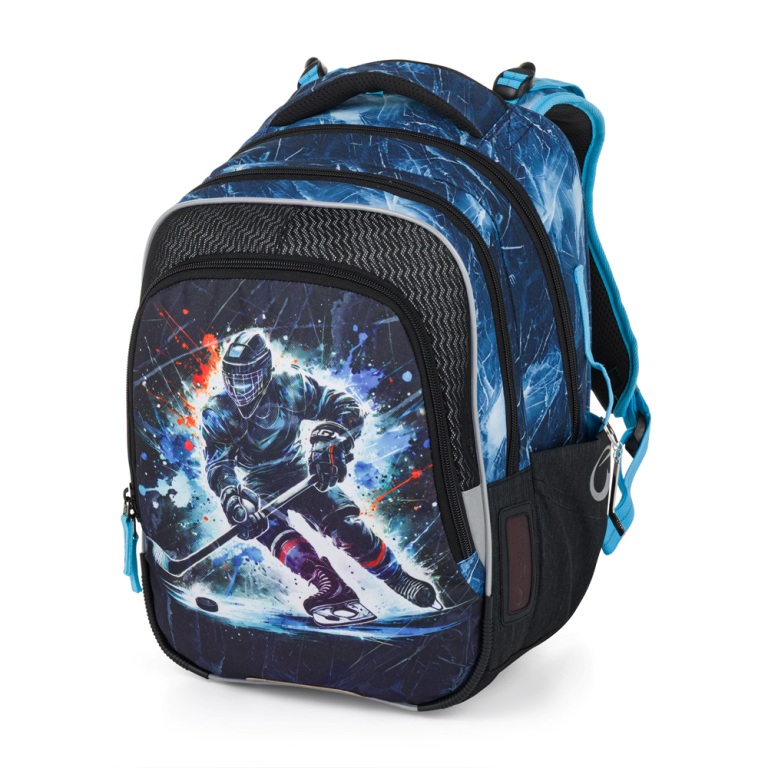 Elegantný superbatoh pre chlapcov s trojkomorovým usporiadaním pre učebnice a zošity, ergonomicky tvarovaným chrbtovým systémom pre pohodlné nosenie a reflexnými prvkami - ideálny spoluhráč pre športovo založených školákov od prvej do tretej triedy. Ramenné popruhy a chrbtový systém sú mäkko polstrované. Ergonomicky tvarovaný chrbát a priedušný bedrový pás podporujú správne držanie tela. Pružný hrudný pás napomáha stabilite batohu na chrbte. Zabraňuje skĺznutiu ramenných popruhov z ramien. Dno batohu je sklopné. Po jeho preklopení do vodorovnej polohy sa učebnice a zošity dovnútra ľahšie ukladajú. Batoh stojí na štyroch plastových nožičkách, takže nespadne doma pri písacom stole ani pri lavici. Školák si ho môže zavesiť za látkové pútko.