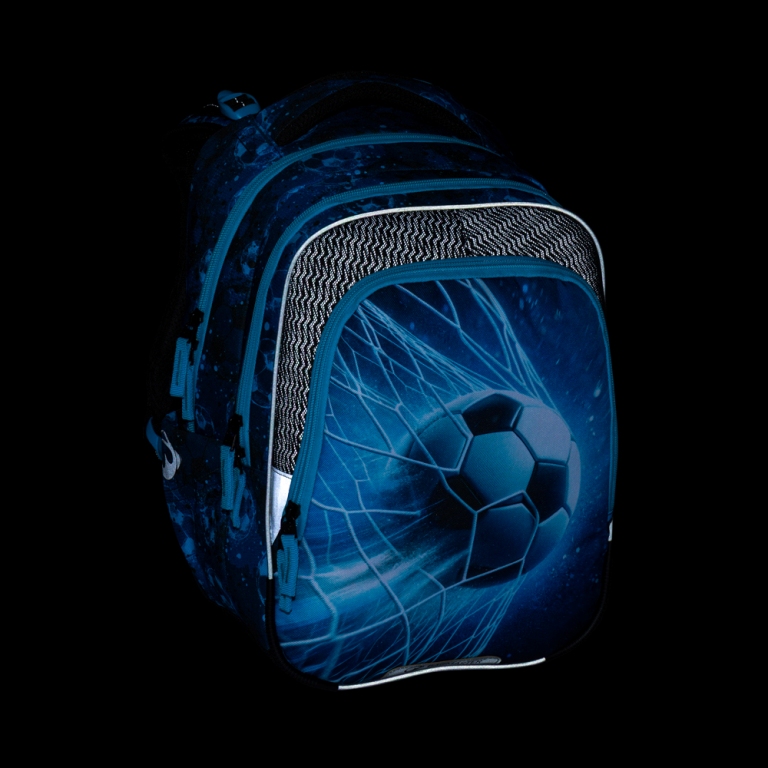 Elegantný superbatoh pre chlapcov s trojkomorovým usporiadaním pre učebnice a zošity, ergonomicky tvarovaným chrbtovým systémom pre pohodlné nosenie a reflexnými prvkami - ideálny spoluhráč pre športovo založených školákov od prvej do tretej triedy. Ramenné popruhy a chrbtový systém sú mäkko polstrované. Ergonomicky tvarovaný chrbát a priedušný bedrový pás podporujú správne držanie tela. Pružný hrudný pás napomáha stabilite batohu na chrbte. Zabraňuje skĺznutiu ramenných popruhov z ramien. Dno batohu je sklopné. Po jeho preklopení do vodorovnej polohy sa učebnice a zošity dovnútra ľahšie ukladajú. Batoh stojí na štyroch plastových nožičkách, takže nespadne doma pri písacom stole ani pri lavici. Školák si ho môže zavesiť za látkové pútko.