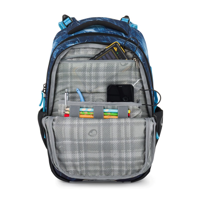 Elegantný superbatoh pre chlapcov s trojkomorovým usporiadaním pre učebnice a zošity, ergonomicky tvarovaným chrbtovým systémom pre pohodlné nosenie a reflexnými prvkami - ideálny spoluhráč pre športovo založených školákov od prvej do tretej triedy. Ramenné popruhy a chrbtový systém sú mäkko polstrované. Ergonomicky tvarovaný chrbát a priedušný bedrový pás podporujú správne držanie tela. Pružný hrudný pás napomáha stabilite batohu na chrbte. Zabraňuje skĺznutiu ramenných popruhov z ramien. Dno batohu je sklopné. Po jeho preklopení do vodorovnej polohy sa učebnice a zošity dovnútra ľahšie ukladajú. Batoh stojí na štyroch plastových nožičkách, takže nespadne doma pri písacom stole ani pri lavici. Školák si ho môže zavesiť za látkové pútko.