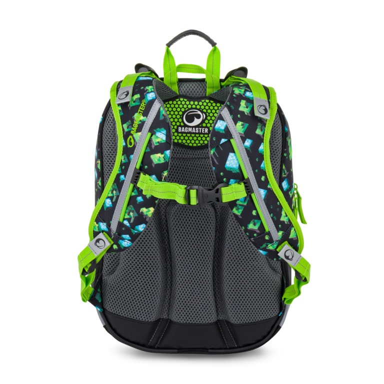 Ľahký trojkomorový školský batoh s kockovým motívom pre malých hrdinov. Obľúbia si ho deti aj rodičia. Vhodný od prvej do tretej triedy. Kvalitný systém pre zdravú chrbticu, organizér a praktické vrecká, do ktorých si školák prehľadne usporiada učebnice aj pomôcky. Bezpečné cesty do školy zaručujú reflexné prvky rozmiestnené zo všetkých strán. Ramenné popruhy a chrbtový systém sú mäkko polstrované. Vydrží minimálne do tretej triedy.