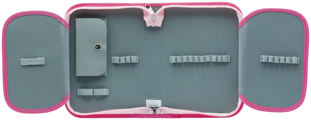 Školský jednoduchý jednopriestorový peračník s výborným pomerom cena/úžitkové vlastnosti je vybavený dvomi záložkami a je vhodný najmä pre žiakov 1. stupňa ZŠ pre ich rýchlu orientáciu v peračníku. Uzatvára sa na jeden samostatný zips. Peračník má celkom 23 pružných gumových pútiek pre uloženie písacích potrieb. Ďalej obsahuje uzatvárateľnú kapsičku na suchý zips a na rube obidvoch záložiek sú umiestnené priehľadné priehradky pre uloženie týždenného rozvrhu hodín s menovkou žiaka a na rady pre spotrebiteľov, ktoré môžu byť nahradené inými praktickými informáciami pre žiaka podľa vlastného uváženia (napr. odchody autobusov, telefónne čísla a pod.).